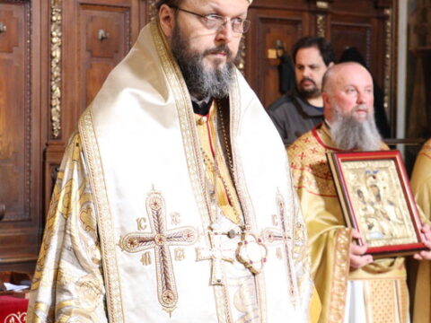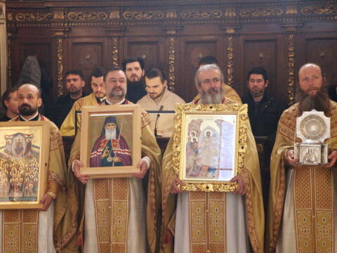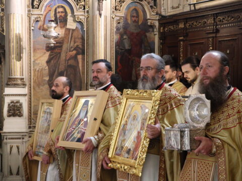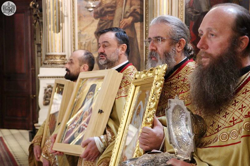 После заамвоне молитве служен је чин литије са светим иконама у Недељу Православља.