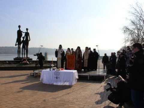 После програма уприличеног на Кеју жртава рације, присутни су се упутили ка новосадској плажи Штранд, где је служен помен код спомен-плоче жртвама Рације.