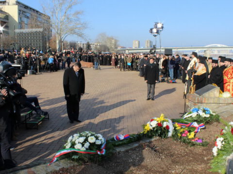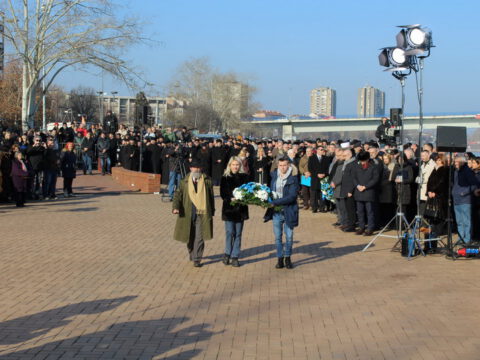 Венац са брода Речне флотиле у Дунав су спустили представници Скупштине града Новог Сада, Јеврејске општине Нови Сад и Матице ромске.