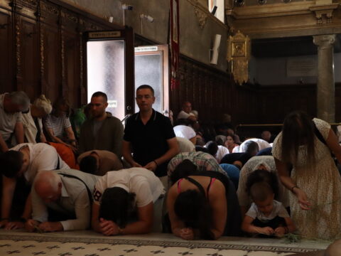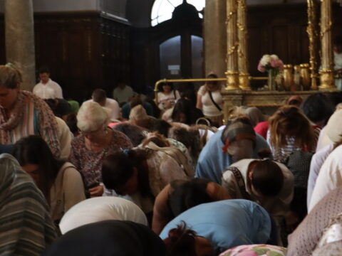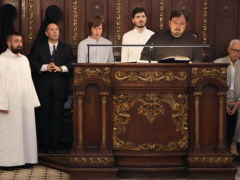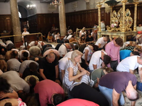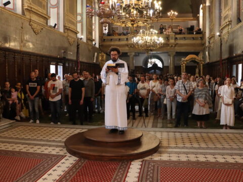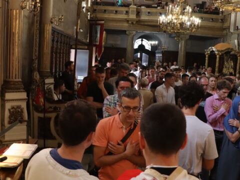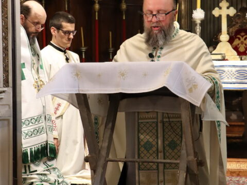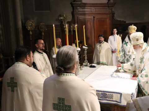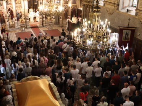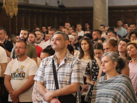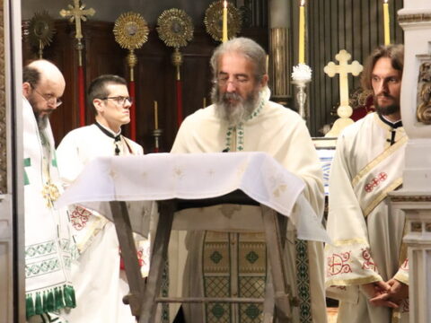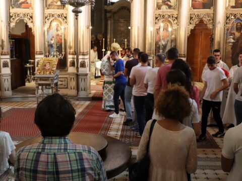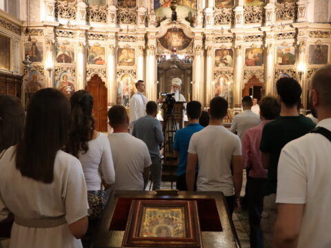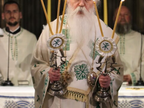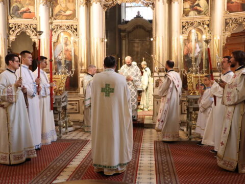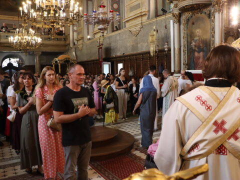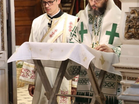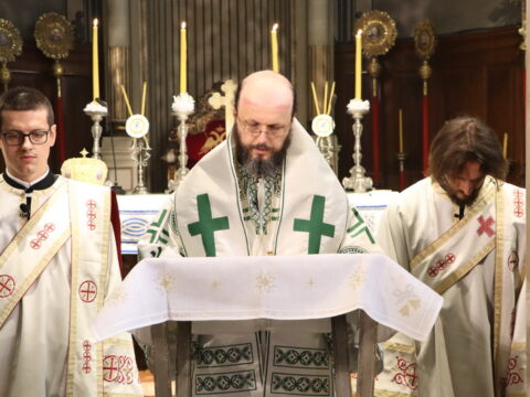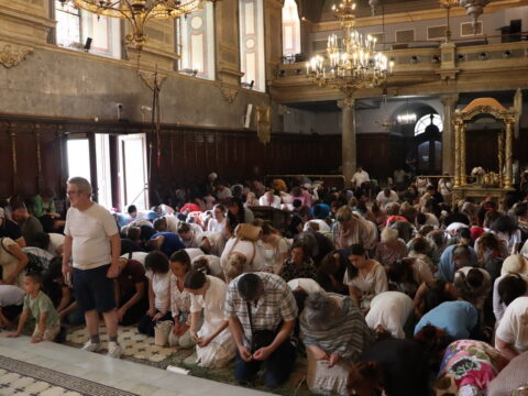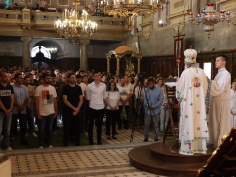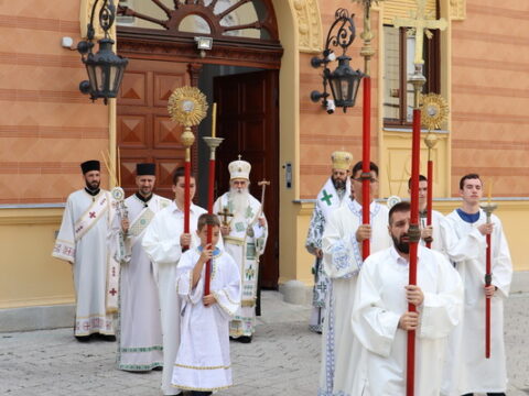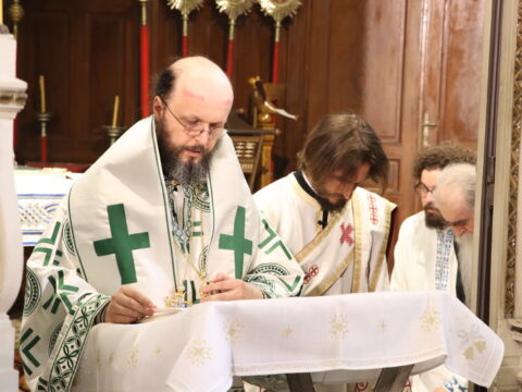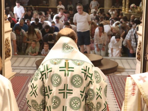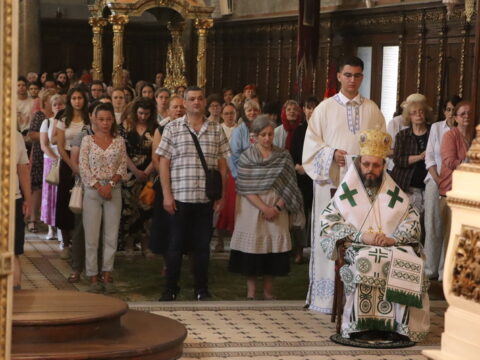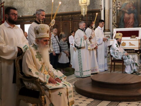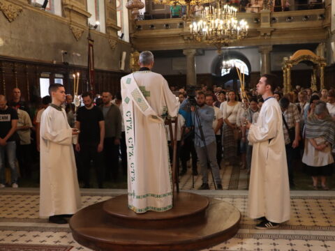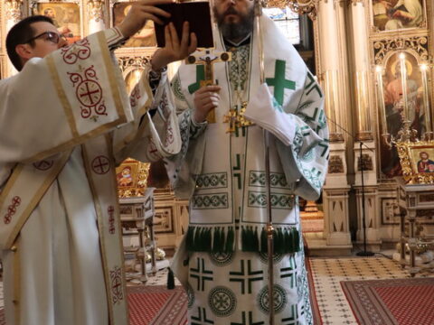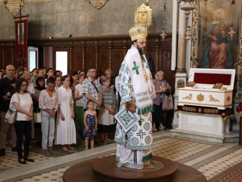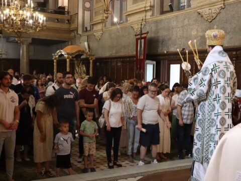 После отпуста свете Литургије, Епископ мохачки господин Дамаскин је служио празнично вечерње свете Педесетнице, на којем су прочитане коленопреклоне молитве.