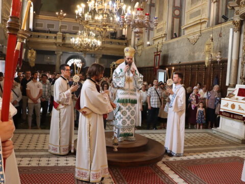 У недељу свете Педесетнице, 10/23. јуна 2024. године, Његово Преосвештенство Епископ бачки госпoдин др Иринеј началствовао је на светој архијерејској Литургији у Саборном храму у Новом Саду. Преосвећеном Епископу бачком Иринеју саслуживали су Епископ мохачки господин Дамаскин, викар Епископа бачког, свештенство Саборног храма и новосадски ђакони.