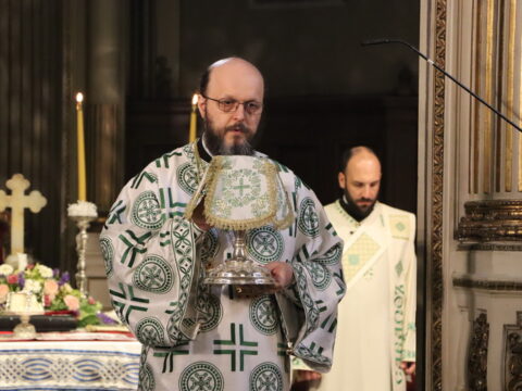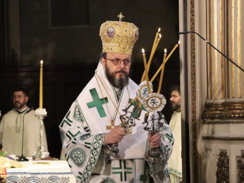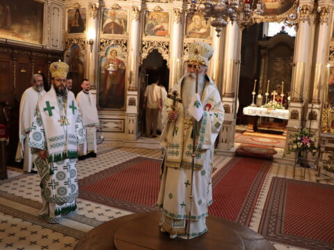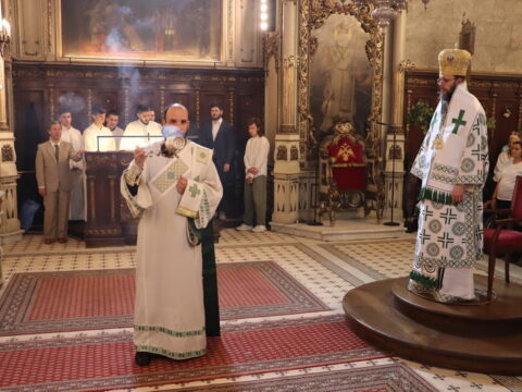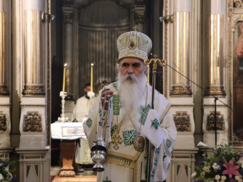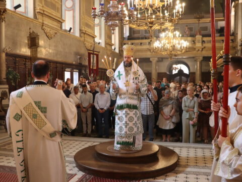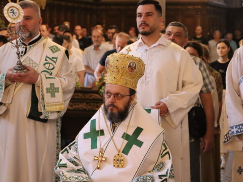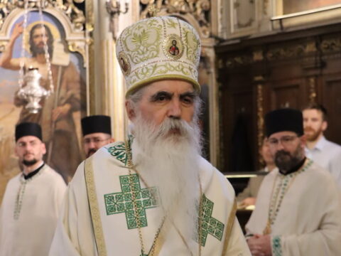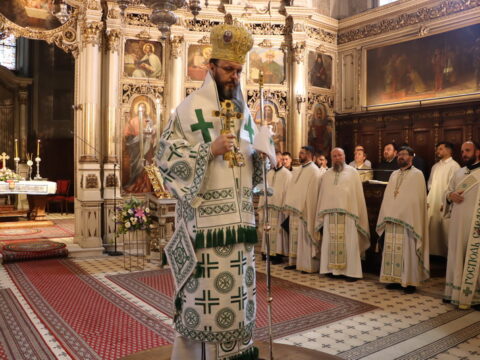 У недељу свете Педесетнице, 26. маја / 8. јуна 2025. године, Његово Високопреосвештенство Митрополит бачки госпoдин др Иринеј началствовао је на светој архијерејској Литургији у Саборном храму у Новом Саду. Митрополиту бачком Иринеју саслуживали су Епископ мохачки господин Дамаскин, свештенство Саборног храма и новосадски ђакони.