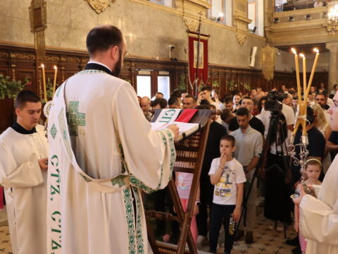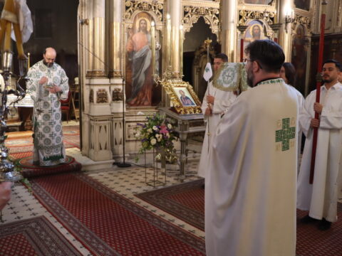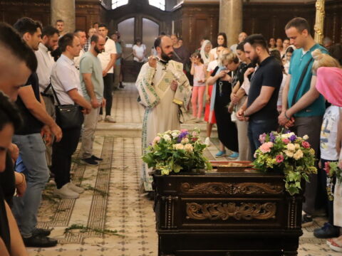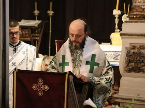 После отпуста свете Литургије, Епископ мохачки господин Дамаскин је служио празнично вечерње свете Педесетнице, на којем су прочитане коленопреклоне молитве.