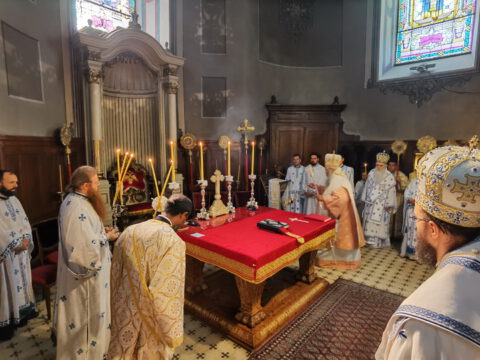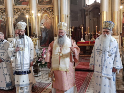 На празник Преображења Господњег, у суботу 6/19. августа 2023. године, на светој архијерејској Литургији у Саборном храму у Новом Саду началствовао је Високопреосвећени Митрололит китруски, катерински и платамонски г. Георгије, уз саслужење Преосвећене господе епископâ бачког Иринеја и мохачког Дамаскина, свештенства и ђаконства Митрополије китруске, катеринске и платамонске и Епархије бачке.