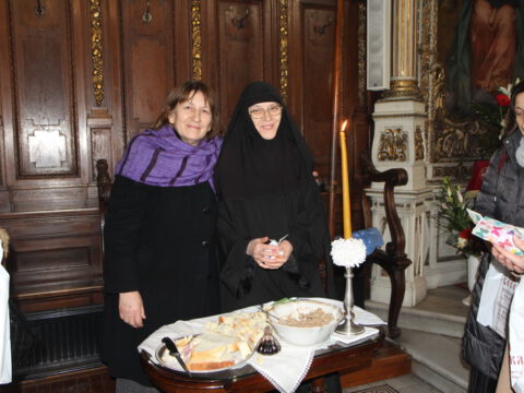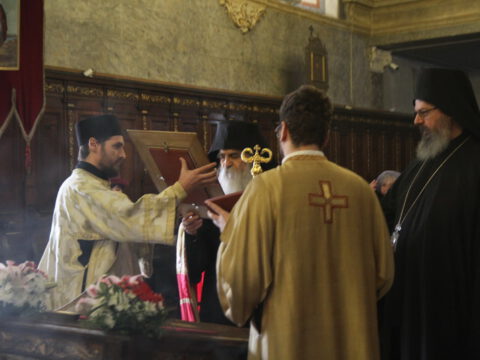 После свете Литургије, Епископ мохачки г. Исихије благословио је славске дарове – колач и жито. Протопрезвитер-ставрофор Миливој Мијатов, архијерејски намесник новосадски први, упутио је најлепше молитвене жеље епископима бачком Иринеју и мохачком Исихију, поводом празновања њиховог небеског молитвеника и заступника пред Господом.