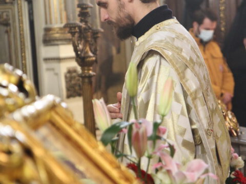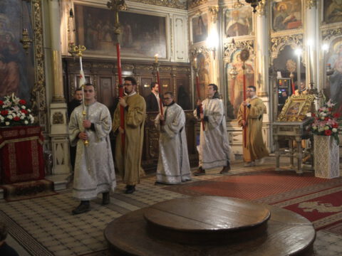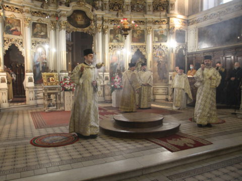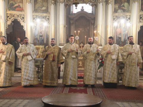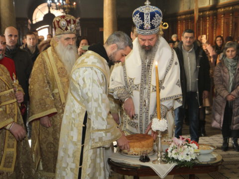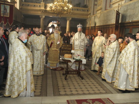 Честитајући присутнима празник, а свечарима славу, владика Иринеј је подсетио да је ранијих година, по традицији Епархије бачке, благосиљање славских дарова било у Двору, у дому где епископи новосадски и бачки живе, и нагласио да ће, ове године, благосиљање жита и колача бити у Саборном храму. „Ове године су прилике посебне, зато нас је и мало мање у храму него обично. Многи људи морају да буду изоловани, многима лекари препоручују да се пазе, та брига људи за здравље и за живот је разумљива и оправдана, али ми се, наравно, не одричемо свога црквеног и богослужбеног живота, а поготову ни по цену живота не одричемо се Хлеба Живота и Пића бесмртности, тојест Тела и Крви Христове, којима се причешћујемо на свакој светој Литургији. Срећна слава и празник свима вама”, додао је Епископ новосадски и бачки г. Иринеј.