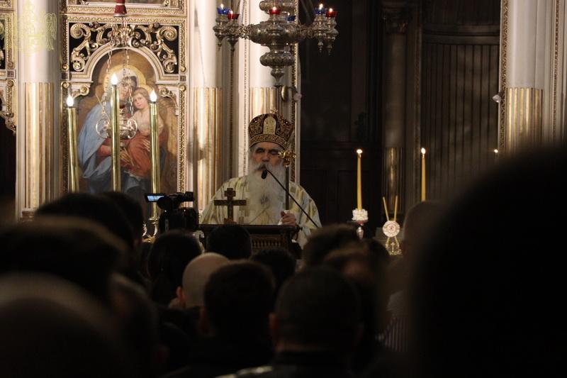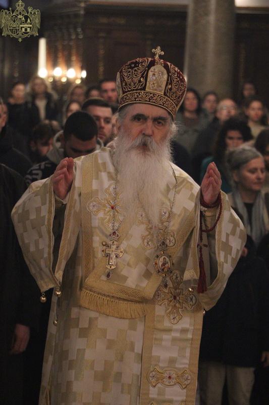 Беседећи после прочитаних јеванђелских зачала, Високопреосвећени митрополит Иринеј је рекао да коначни циљ укупног живота сваког хришћанина јесте припрема за излазак на Божји суд љубави, када ће се показати ко је заиста живео вером у Господа и љубављу према Њему, која се примењује на ближњима. Говорећи о смислу празника Сретења Господњег, он је, између осталог, рекао: „Сретење Господње са нама и сусрет наш са Њим – то није тренутни догађај. Нису свети Симеон, или пророчица Ана, или Пресвета Богомајка сведоци само једног догађаја који кратко траје у храму у Јерусалиму пре двадесет векова него одраз и израз читавог њиховог бића и живљења. Пресвета Богомајка је непрекидно живела Духом Светим, живела по Богу и у Богу. Свети Симеон је такође праведно и богоугодно живео на земљи и зато био удостојен јединственог обећања да неће видети смрти док не види Помазаника Божјег, Христа Господњега, Спаситеља света. То се на данашњи дан и остварило. Исто тако и пророчица Ана, и она је сведок тога благодарног и побожног човечанства, која, оставши млада удовица, сав остатак свог дугог века на земљи проводи у храму Божјем, служећи непрестано Богу постом и молитвом. То је све путоказ и за наш живот на земљи. Треба да живимо вером, да живимо молитвом, али да истински садржај живота нашега буде љубав, да бисмо могли примити у себе ону љубав којом је Господ заволео све нас људе, сву творевину Своју, створивши нас, а потом, отпале од Његове љубави, спасавши нас и спасавајући нас непрекидно од свакога зла у свету и од онога који је извор зла, злога, изумитеља греха и смрти, Сатане, али спасавајући нас често и од нашега самога ја, од нас палих и отуђених од Његове благодати.ˮ