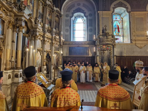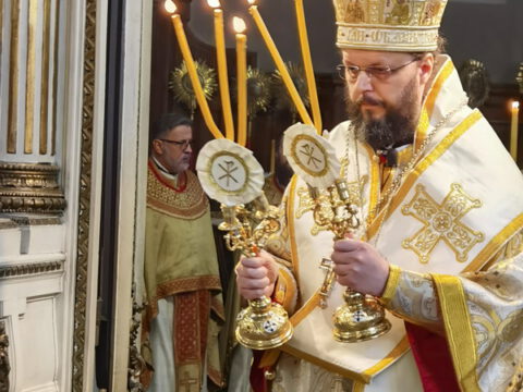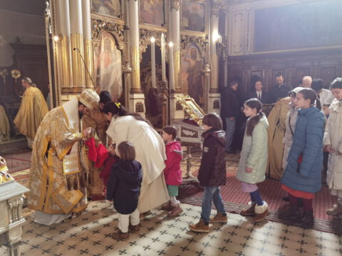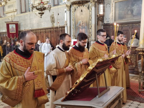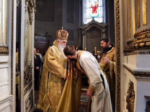 На празник Сретења Господњег, у среду, 2/15. фебруара 2023. године, Његово Преосвештенство Епископ бачки господин др Иринеј служио је свету архијерејску Литургију у Саборном храму у Новом Саду, а саслуживали су Његово Преосвештенство Епископ мохачки господин Дамаскин, архимандрит Василије (Костић), свештенство и ђаконство Епархије бачке.