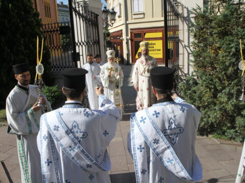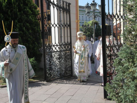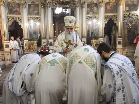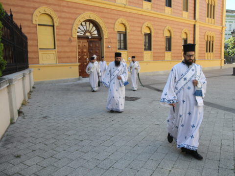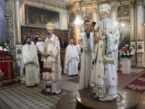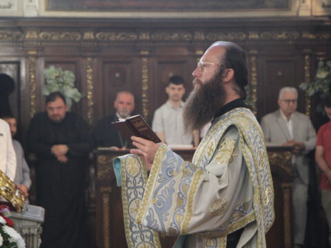 У недељу Свете Педесетнице, 7. јуна/20. јуна 2021. године, Његово Преосвештенство Епископ новосадски и бачки госпoдин Иринеј началствовао је на светој Литургији у Саборном храму у Новом Саду, а саслуживали су новоизабрани Епископ ваљевски господин Исихије, братство Саборног храма и новосадски ђакони.
