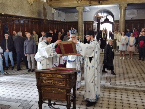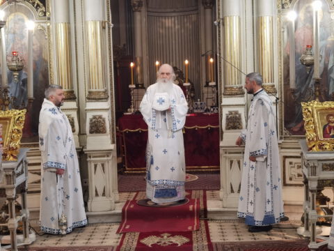 Његово Преосвештенство Епископ бачки г. Иринеј началствовао је на празник Успења Пресвете Богородице, у суботу, 15/28. августа 2021. године, на светој архијерејској Литургији у Саборном храму у Новом Саду. Преосвећеном владици Иринеју су саслуживали свештеници и ђакони Епархије бачке.
