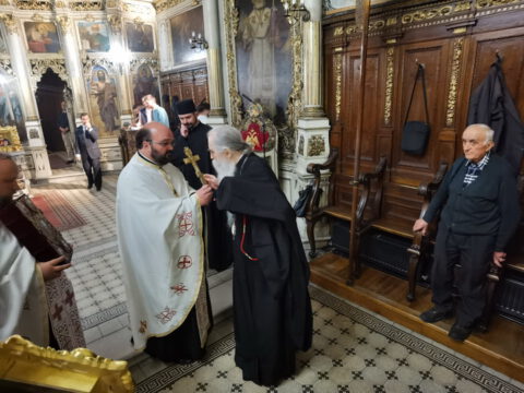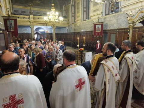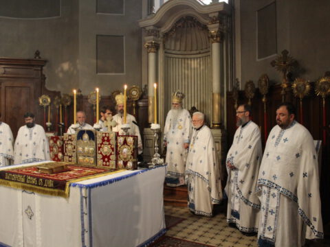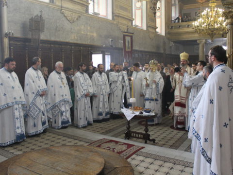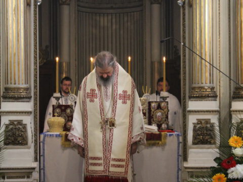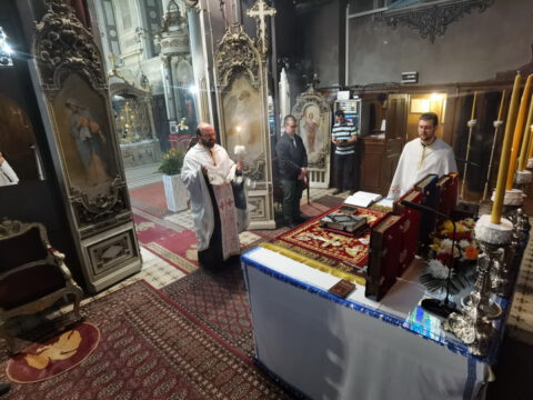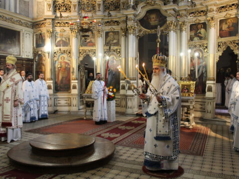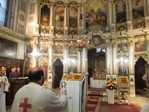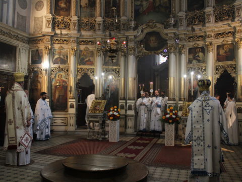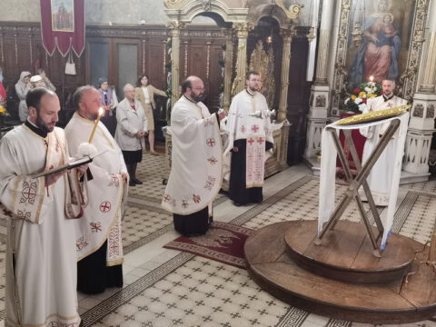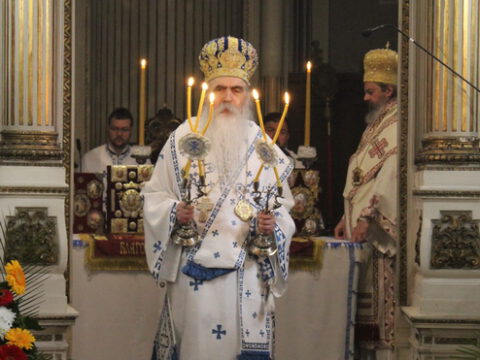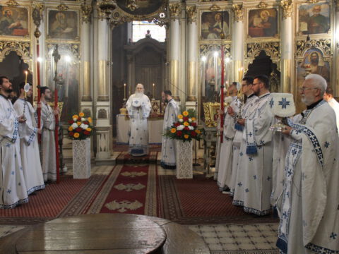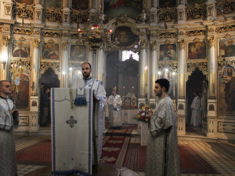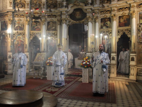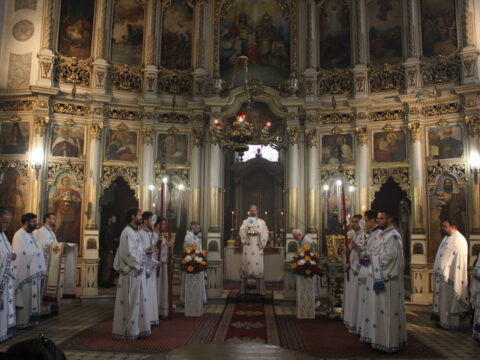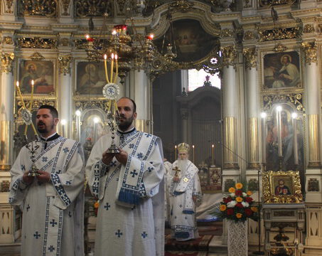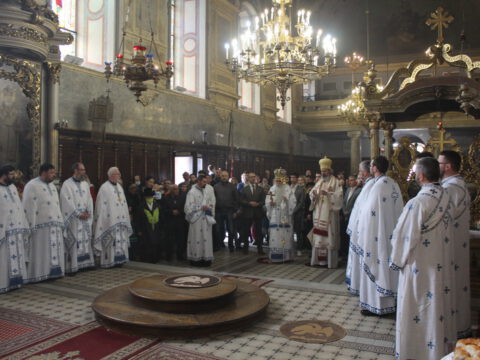 На дан празника, на светој архијерејској Литургији началствовао је Његово Преосвештенство Епископ бачки господин Иринеј, уз саслужење Његовог Преосвештенства Епископа мохачког господина Исихија, новосадских свештеника и ђаконâ.
