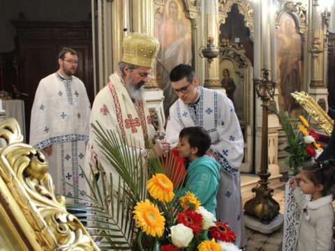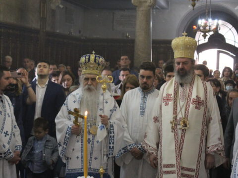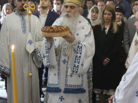 У својој архипастирској беседи после прочитаног јеванђелског зачала, Преосвећени владика Иринеј је поучио верни народ о празнику Светога великомученика Георгија. „Свети Георгије, родом из града Лиде у Палестини, био је римски војник. Он је пред царем и пред сенатом Рима исповедио своју хришћанску веру и, уједно, изобличио владаоце тадашње најмоћније империје због њиховог идолопоклонства. Разјарио се, наравно, сурови Диоклецијан, и наредио да га ставе на најстрашније муке. Свети Георгије је остао доследан и, на крају, положио живот свој за Христа, за Његову правду, истину, љубав, за све оно што нам Христос доноси и дарује у Својој Личности. Зато је и назван великомучеником. Тај почасни назив добијају они који су најстрашније страдали и остали непоколебиви. Реч великомученик у изворном облику на грчком језику, са којега је преведена, има два значења: великомученик и велики сведок – један од великих сведока Христових. Мучеништво није добровољно тражење страдања, није истицање себе, неког свог самоубилачког хероизма, него спремност – из љубави према Христу и из Христове љубави према ближњима нашима свима – да сведочи Христа у свако време, на сваком месту и по сваку цену, па, ако је тако Господ допустио, и по цену свога живота и проливања своје крви од стране гонитељâ. Тако је, дакле, он с правом велики сведок љубави Христове, сведок истинске, дубоке, свепрожимајуће вере правих хришћана. Он је био један од њих и зато га је Господ прославио и зато се и назива победоносац. Господ га је и после његовог телесног упокојења прославио даром чудотворства. До дана данашњега, за све оне који призивају његове молитве, веома је осетан у њиховом животу. Зато је један од најомиљенијих и најпознатнијих угодника Божјих, и то не само у нашем, хришћанском свету, него на читавом Блиском и Средњем истоку, где су, као што знамо из историје, многи милиони хришћана насилно исламизирани. Многи православни хришћани код нас, у српском народу, славе Ђурђевдан као своју славу. Свети Георгије чује и наше молитве, ако му се обратимо са вером у моћ његове молитве, а, пре свега, у моћ и љубав Онога Који је и њему дао благодат и силу”, истакао је Преосвећени владика Иринеј, честитајући свима сабранима престони празник Саборног храма.