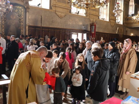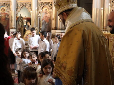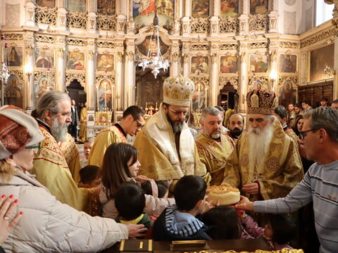 После заамвоне молитве извршен је чин благосиљања славских дарова, принетих у славу Божју, а у част Светог Саве. По отпусту свете Литургије, Високопреосвећени митрополит Иринеј је честитао празник сабраном верном народу. На крају свете Литургије, деца и ученици су приредили рецитал у част Светога Саве, небеског покровитеља свих ђака, учитеља и наставника. Светој Литургији у Саборном храму присуствовали су ученици основних и средњих школа.