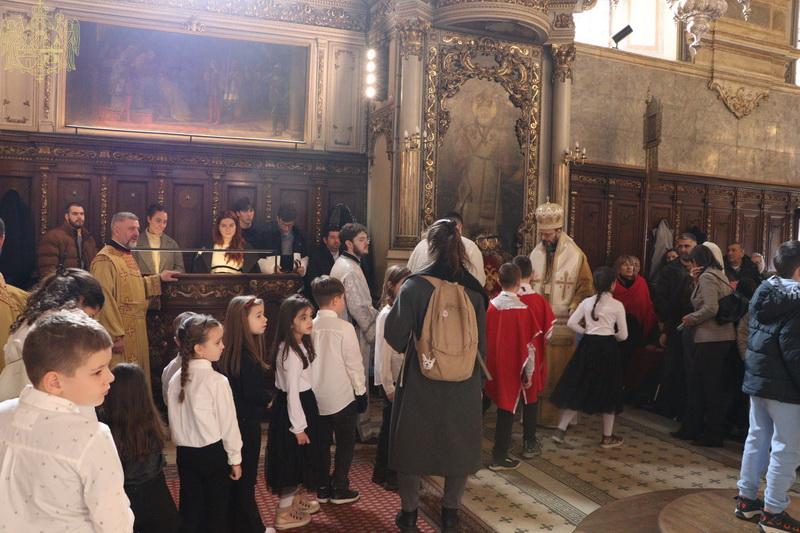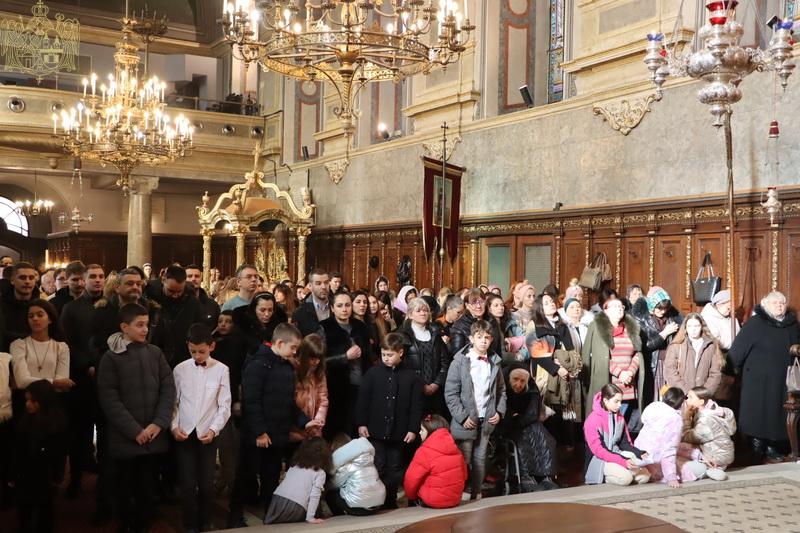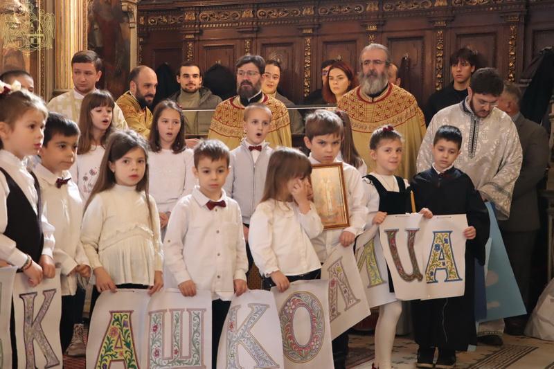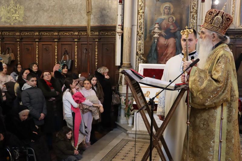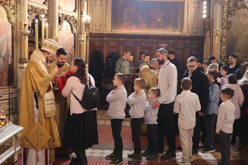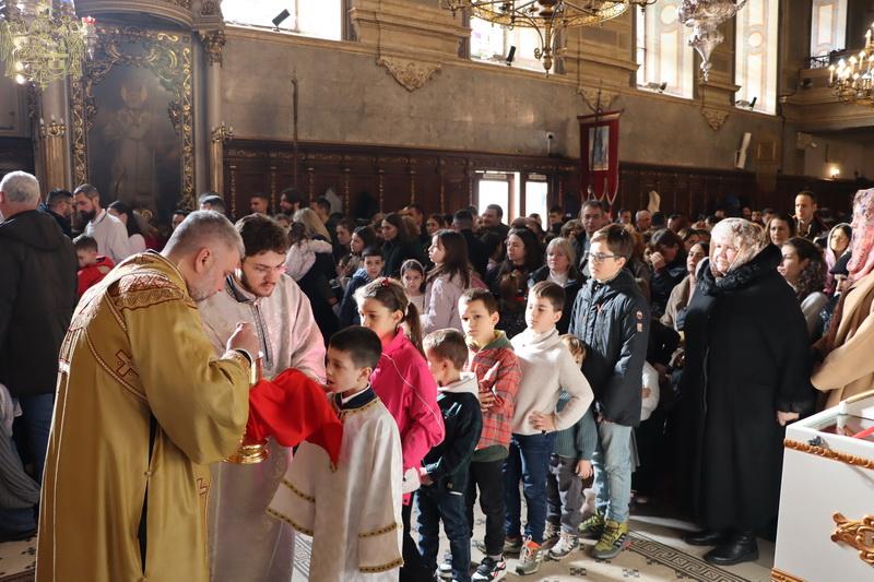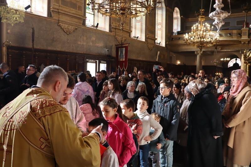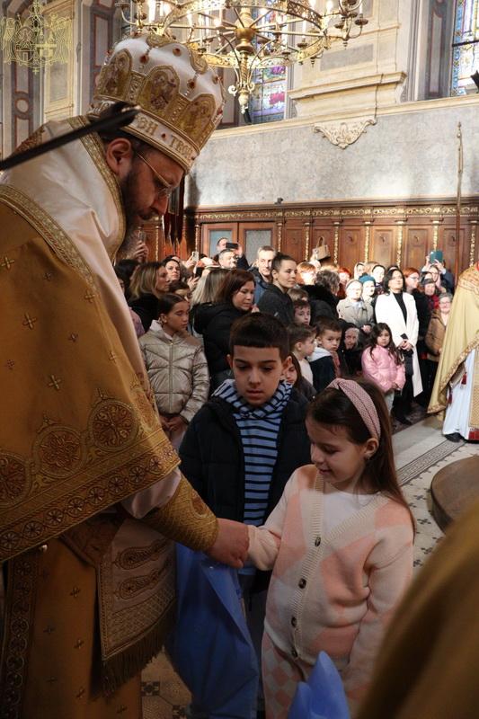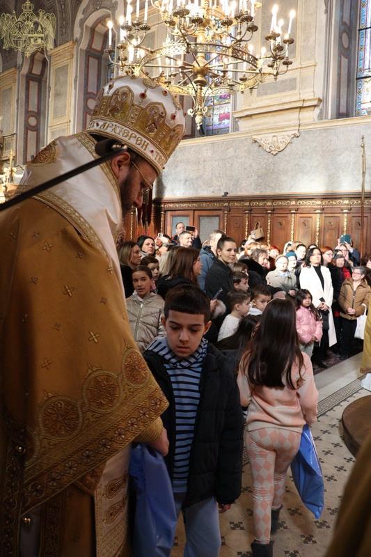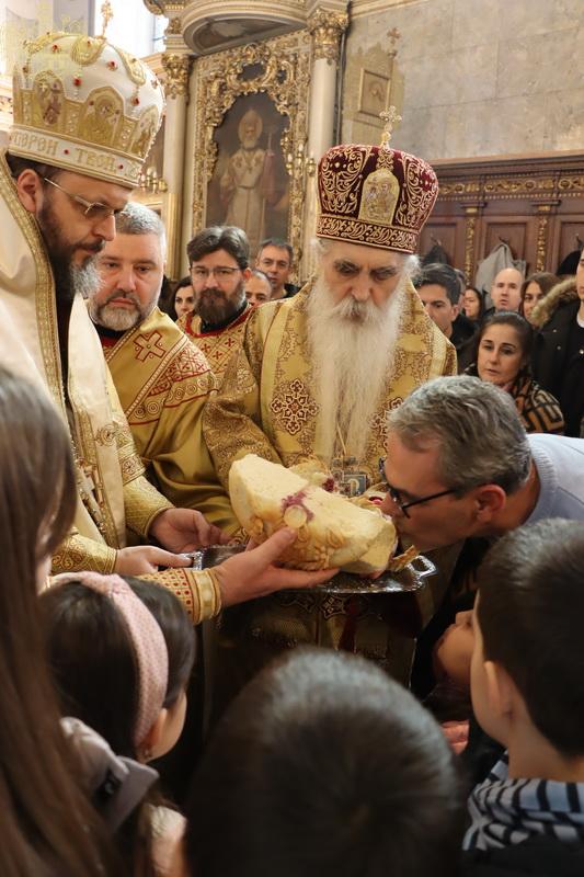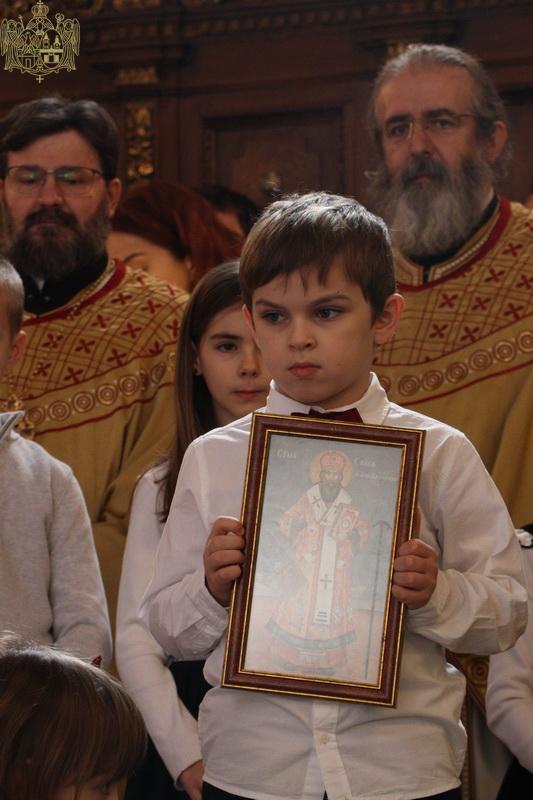 После заамвоне молитве извршен је чин благосиљања славских дарова, принетих у славу Божју, а у част Светог Саве. По отпусту свете Литургије, Високопреосвећени митрополит Иринеј је честитао празник сабраном верном народу. На крају свете Литургије, деца и ученици су приредили рецитал у част Светога Саве, небеског покровитеља свих ђака, учитеља и наставника. Светој Литургији у Саборном храму присуствовали су ученици основних и средњих школа.