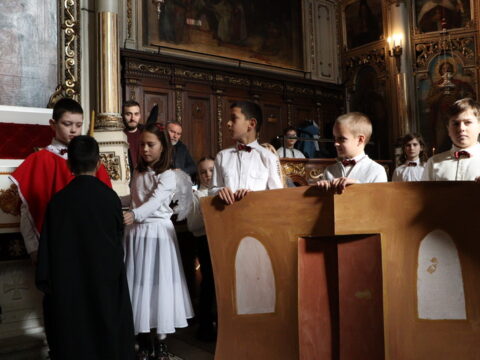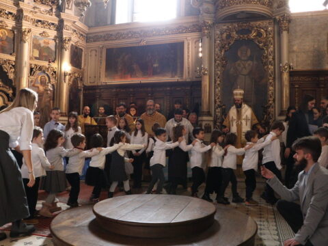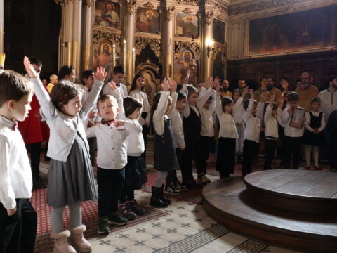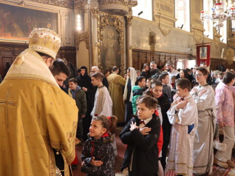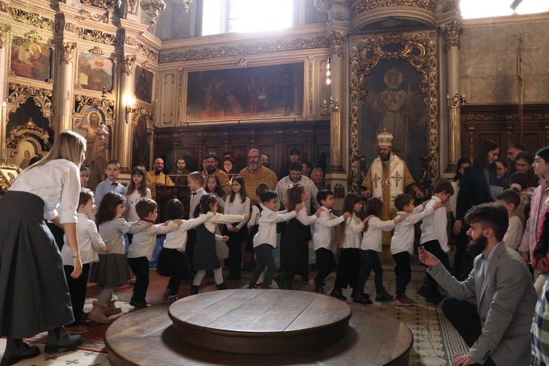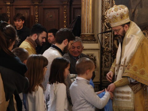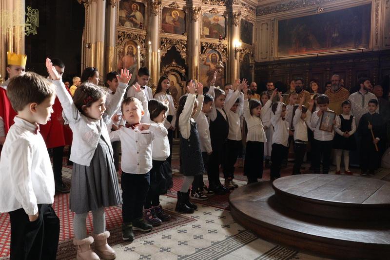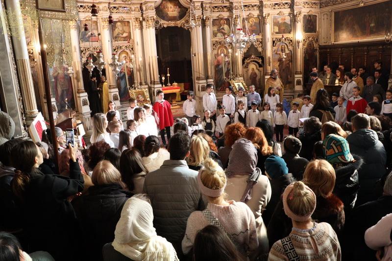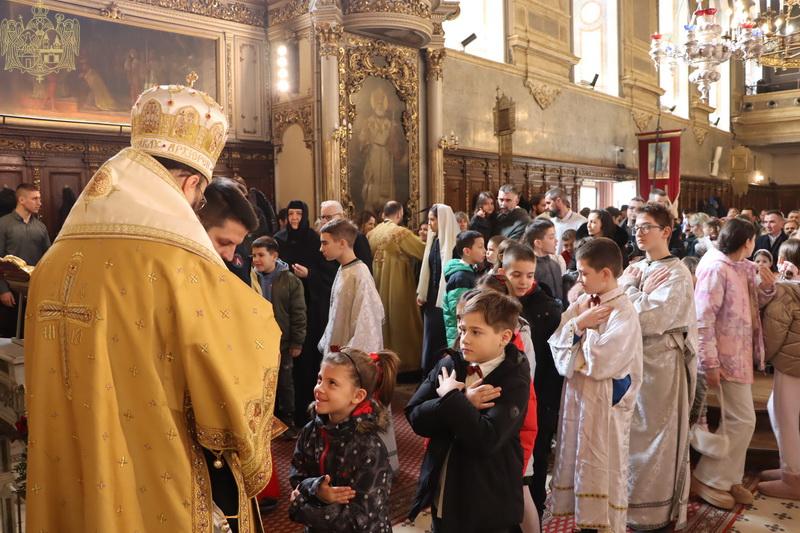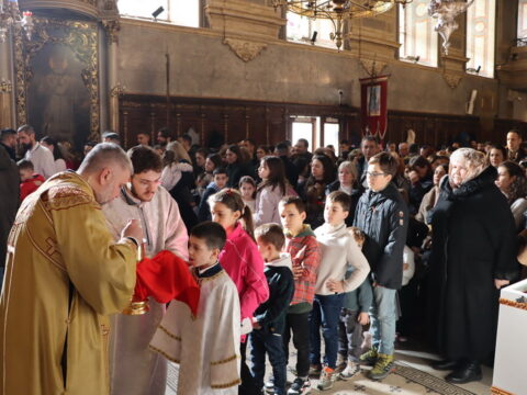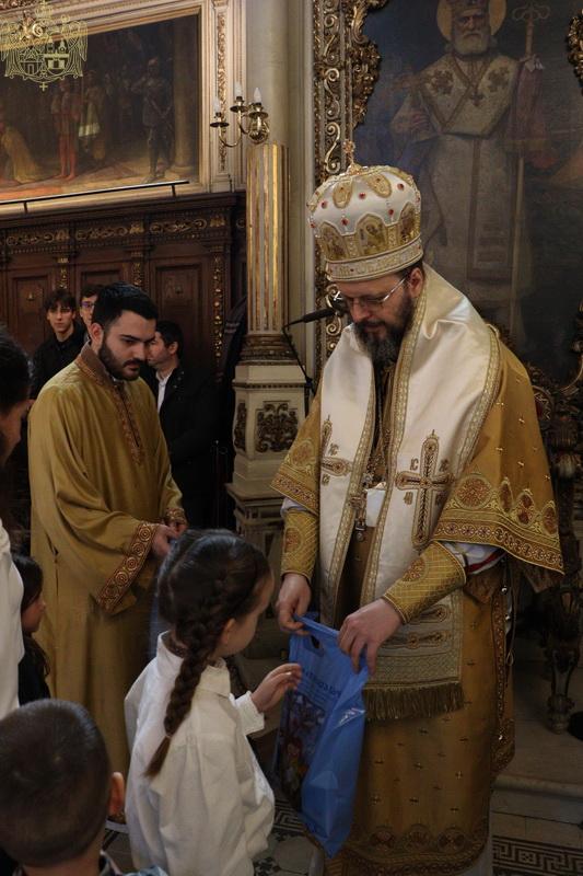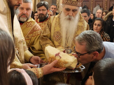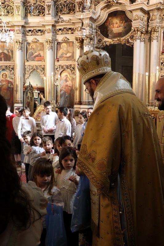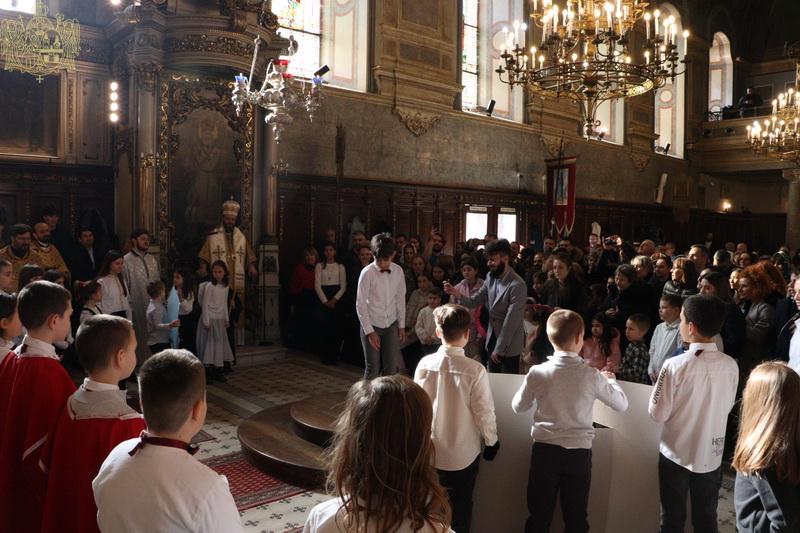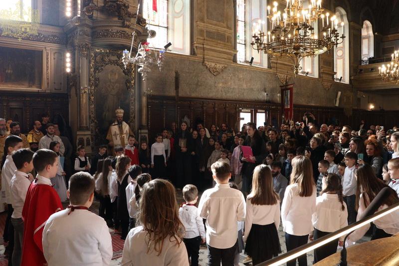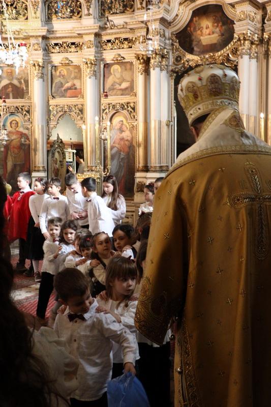 После заамвоне молитве извршен је чин благосиљања славских дарова, принетих у славу Божју, а у част Светог Саве. По отпусту свете Литургије, Високопреосвећени митрополит Иринеј је честитао празник сабраном верном народу. На крају свете Литургије, деца и ученици су приредили рецитал у част Светога Саве, небеског покровитеља свих ђака, учитеља и наставника. Светој Литургији у Саборном храму присуствовали су ученици основних и средњих школа.
