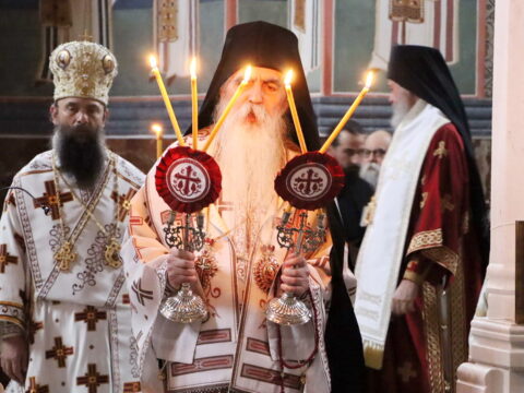 Беседећи после прочитаног јеванђелског зачала, Високопреосвећени владика Иларион је, између осталог, рекао: „За време док смо у храму, посебно на богослужењима и на светој Литургији, ми заборављамо свесно и намерно сва она бремена и искушења и проблеме са којима се сусрећемо у овоме свету. А свесно, по својим људским могућностима, иако малим, пригрљујемо оно што нам је дато кроз свето Јеванђеље, кроз божанско Откровење, а то је свето Јеванђеље и наука Христова, коју слушамо и за коју се, по милости Божјој и Његовом помоћу, и заступништвом светих, на првом месту Пресвете Богородице и свих небеских сила које данас посебно прослављамо. Ми се трудимо да то свето Јеванђеље управо у својим животима оваплотимо и да, по данашњем Јеванђељу, се сврстамо не међу оне многе разумне или разборите и мудре од овога света него најпре желимо да се сврстамо у оне безазлене којима је откривено Царство небеско у тајни Светога Писма, у тајни Оваплоћења Сина Божјег, у тајни Његовог страдања, али и у тајни Васкрсења Христова. За све то ми, по љубави и милости Божјој, нисмо сами у овоме свету. Имамо и оне наше духовне оце, и духовне старце, и учитеље, и многи имају вероучитеље већ четврт века уназад, али ми, изнад и испред свих, можда најчешће, имамо за помагаче невидљиве небеске силе, невидљиве за наше телесне очи, које су свагда присутне са нама и између нас, као и у овоме тренутку, тако и свагда и свуда, још од свете Тајне крштења. Иако су многи примером својим и животом подвижника сведочили да живот у самоћи није живот у усамљености и да је то управо простор сусрета са Богом, и самоочишћења кроз покајање и врлину, кроз врлину послушности, ми и у заједници, када смо једни са другима, ми смо по милости и љубави Божјој и у заједници са Њим и са светим анђелима.ˮ