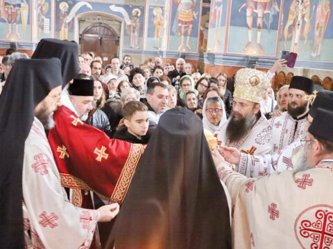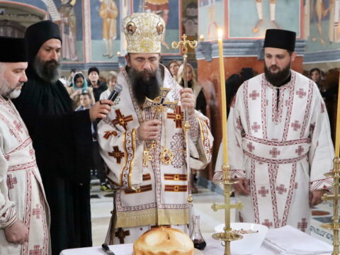 После заамвоне молитве, Митрополит тимочки г. Иларион је благословио славске дарове. После свете Литургије, сабранима се обратио Митрополит бачки г. Иринеј који је братству честитао манастирску славу, а свима сабранима пожелео благословен празник. Он је у обраћању истакао да у данашњем времену, када разне невидљиве силе таме и злобе покушавају да науде Цркви Божјој, многи заборављају да су Господ и сви Његови свети архангели јачи од сваке демонске и зле силе, видљиве или невидљиве.