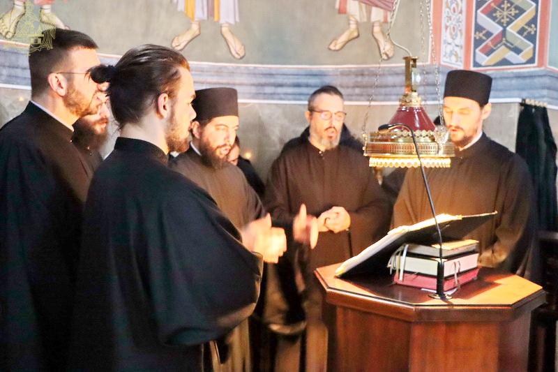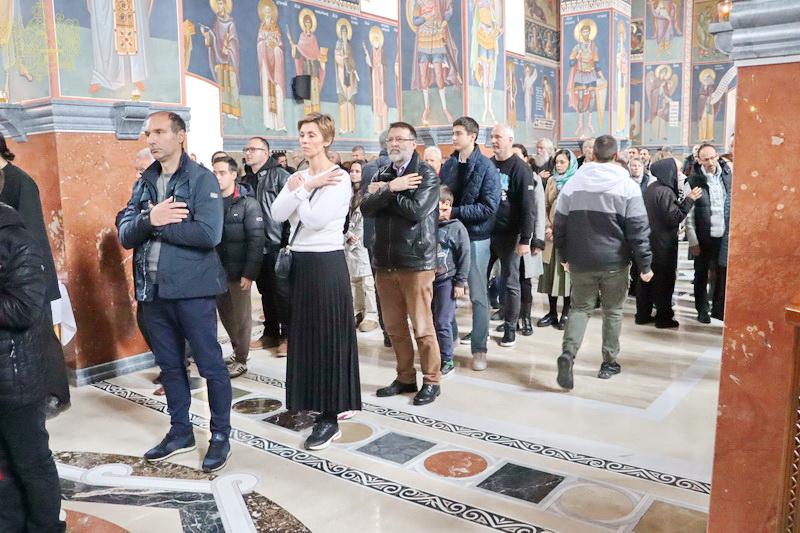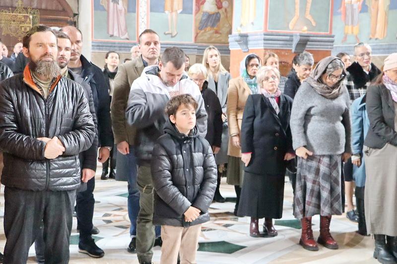 На светој Литургији су појали чланови манастирског братства и чланови хора Школе црквеног појања „Свети Јован Дамаскинˮ при Црквеној општини новосадској. Светој Литургији су присуствовали пуковник Евгениј Пољаков, војни изасланик амбасаде Руске Федерације, г. Никола Бањац, саветник председника Владе Републике Србије, монахиње манастира Васкрсења Христова у Каћу и многобројни верни народ.