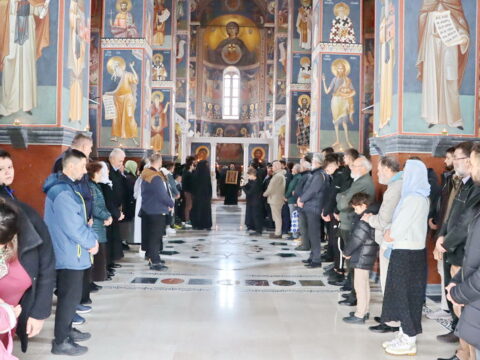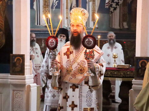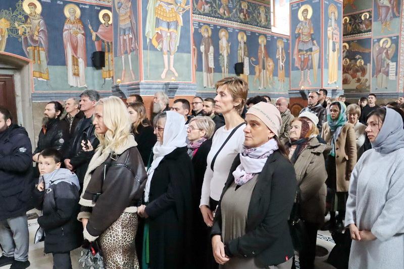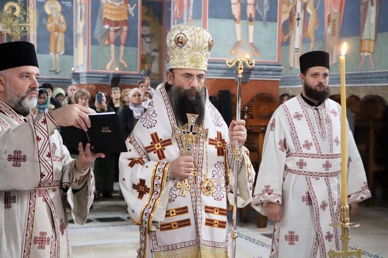 Беседећи после прочитаног јеванђелског зачала, Високопреосвећени владика Иларион је, између осталог, рекао: „За време док смо у храму, посебно на богослужењима и на светој Литургији, ми заборављамо свесно и намерно сва она бремена и искушења и проблеме са којима се сусрећемо у овоме свету. А свесно, по својим људским могућностима, иако малим, пригрљујемо оно што нам је дато кроз свето Јеванђеље, кроз божанско Откровење, а то је свето Јеванђеље и наука Христова, коју слушамо и за коју се, по милости Божјој и Његовом помоћу, и заступништвом светих, на првом месту Пресвете Богородице и свих небеских сила које данас посебно прослављамо. Ми се трудимо да то свето Јеванђеље управо у својим животима оваплотимо и да, по данашњем Јеванђељу, се сврстамо не међу оне многе разумне или разборите и мудре од овога света него најпре желимо да се сврстамо у оне безазлене којима је откривено Царство небеско у тајни Светога Писма, у тајни Оваплоћења Сина Божјег, у тајни Његовог страдања, али и у тајни Васкрсења Христова. За све то ми, по љубави и милости Божјој, нисмо сами у овоме свету. Имамо и оне наше духовне оце, и духовне старце, и учитеље, и многи имају вероучитеље већ четврт века уназад, али ми, изнад и испред свих, можда најчешће, имамо за помагаче невидљиве небеске силе, невидљиве за наше телесне очи, које су свагда присутне са нама и између нас, као и у овоме тренутку, тако и свагда и свуда, још од свете Тајне крштења. Иако су многи примером својим и животом подвижника сведочили да живот у самоћи није живот у усамљености и да је то управо простор сусрета са Богом, и самоочишћења кроз покајање и врлину, кроз врлину послушности, ми и у заједници, када смо једни са другима, ми смо по милости и љубави Божјој и у заједници са Њим и са светим анђелима.ˮ