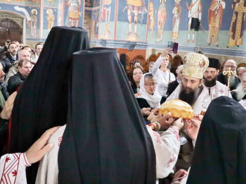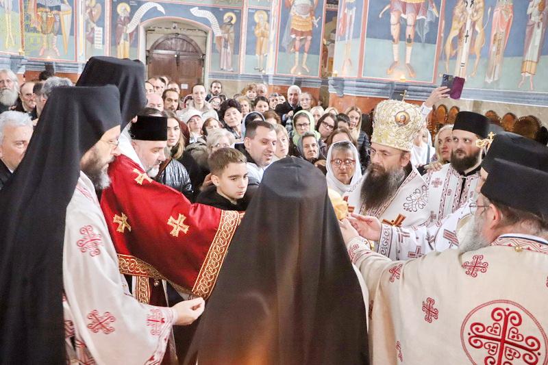 После заамвоне молитве, Митрополит тимочки г. Иларион је благословио славске дарове. После свете Литургије, сабранима се обратио Митрополит бачки г. Иринеј који је братству честитао манастирску славу, а свима сабранима пожелео благословен празник. Он је у обраћању истакао да у данашњем времену, када разне невидљиве силе таме и злобе покушавају да науде Цркви Божјој, многи заборављају да су Господ и сви Његови свети архангели јачи од сваке демонске и зле силе, видљиве или невидљиве.