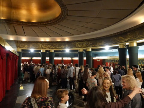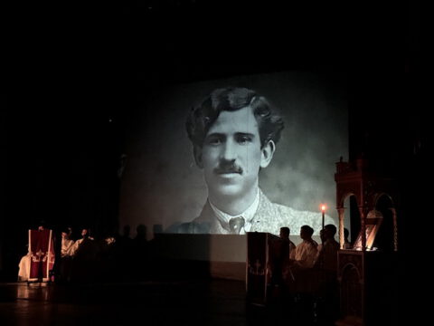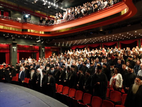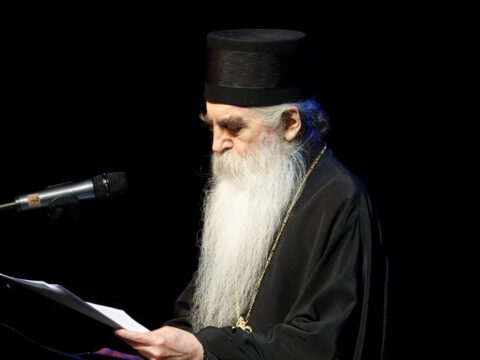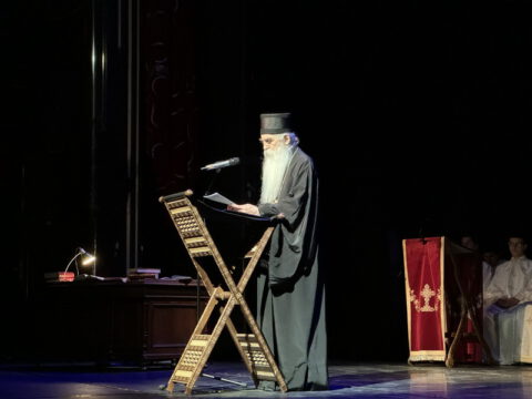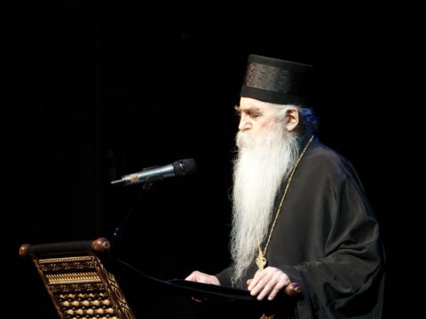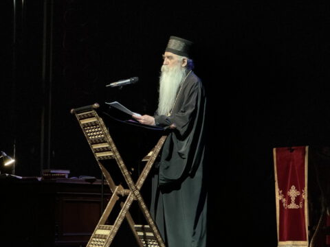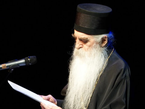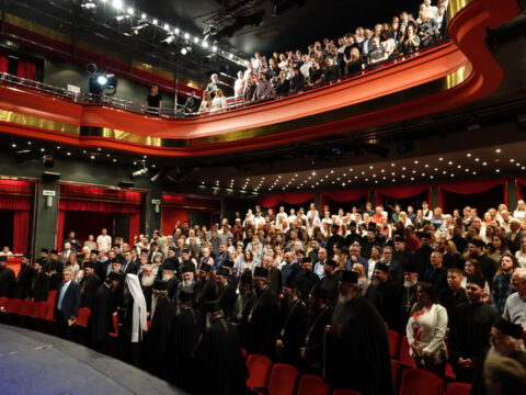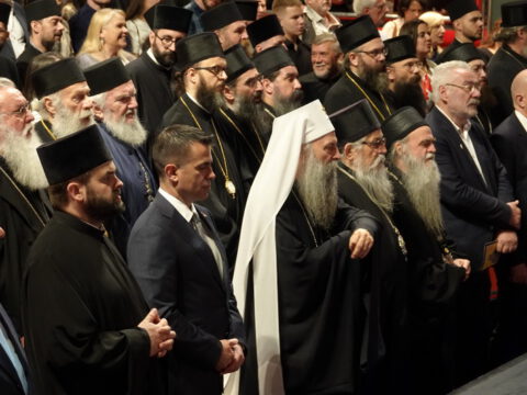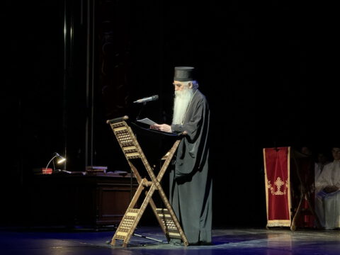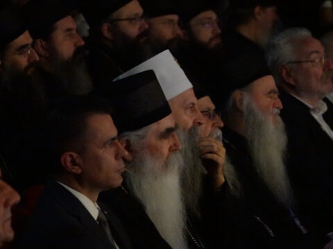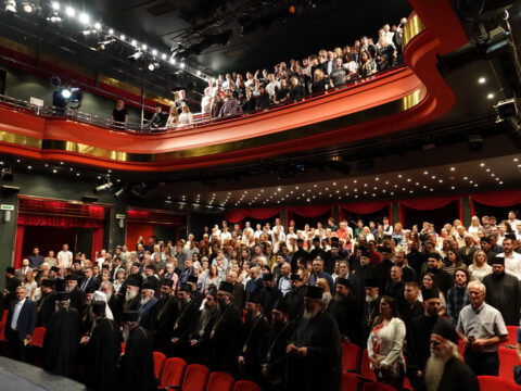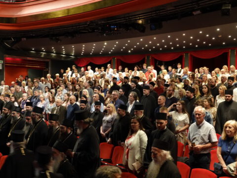 Велику дворану Позоришта на Теразијама, њене ложе и галерије вечерас је дупке испунило и старо и младо. Отачаствени архијереји предвођени Патријархом српским, представници државних власти, важних културних и научних институција, студенти и ђаци окупили су се да у престоници васцелог Српства свечано обележе 130 година од рођења, 45 година од упокојења и 10 година од преноса моштију преподобног оца нашег Јустина Ћелијског. Публика је седела чак и на поду између редова седишта, а велики број заинтересованих је, нажалост, остао на улици испред позоришта.