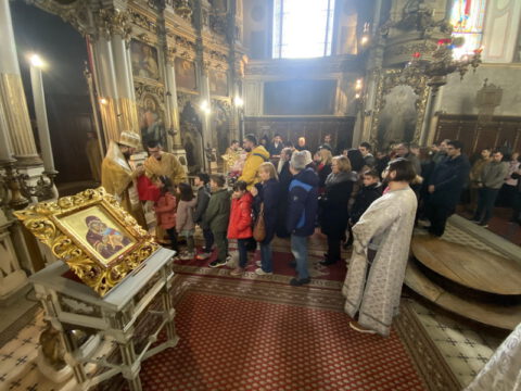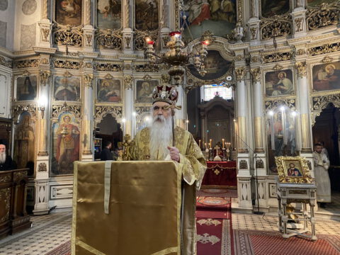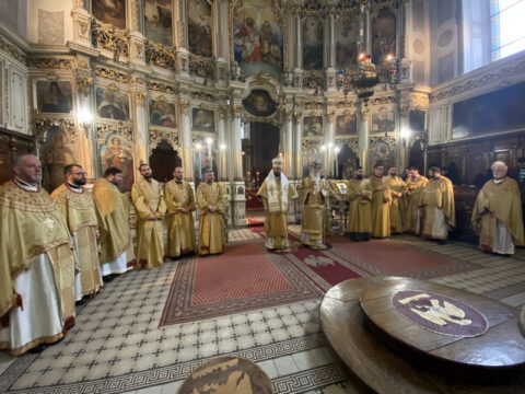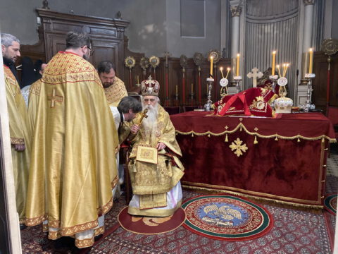 У Недељу месопусну, 14/27. фебруара 2022. године, на светој архијерејској Литургији у Саборном храму у Новом Саду началствовао је Његово Преосвештенство Епископ бачки господин др Иринеј. Преосвећеном епископу Иринеју саслуживали су Његово Преосвештенство Епископ мохачки господин Дамаскин, свештеници Саборног храма и новосадски ђакони.