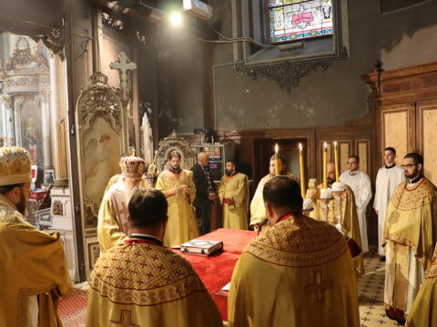 На празник Светог великомученика Димитрија – Митровдан, у петак, 26. октобра / 8. новембра 2024. године, Његово Високопреосвештенство Митрополит бачки господин др Иринеј је началствовао на светој архијерејској Литургији у Саборном храму у Новом Саду. Високопреосвештеном Митрополиту бачком су саслуживали Његово Преосвештенство Епископ мохачки господин Дамаскин, као и свештеници и ђакони Епархије бачке.