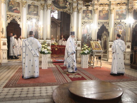 По завршетку свете Литургије, Преосвећени владика Иринеј је честитао празник верноме народу Цркве Божје у Бачкој.